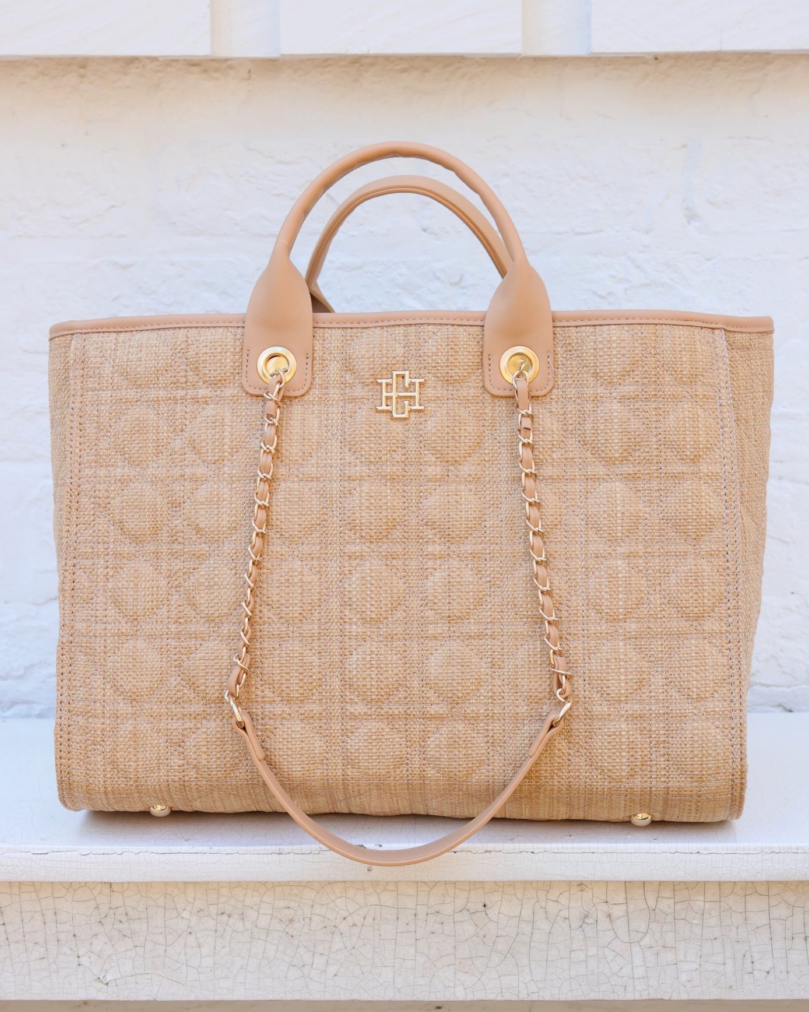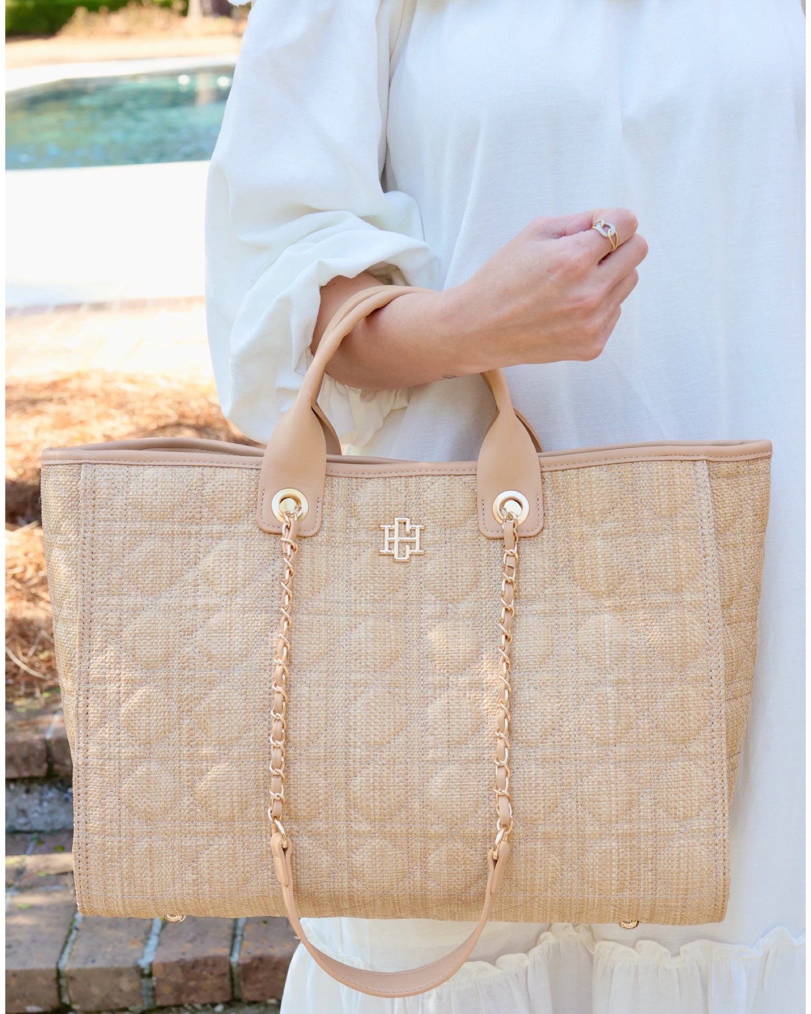 Caroline Hill's Melissa Tote is the perfect blend of style and functionality. This Natural Quilted Tote Purse will add a touch of elegance to any outfit. With enough space to carry all your essentials, it's a must-have for any fashion-forward individual.