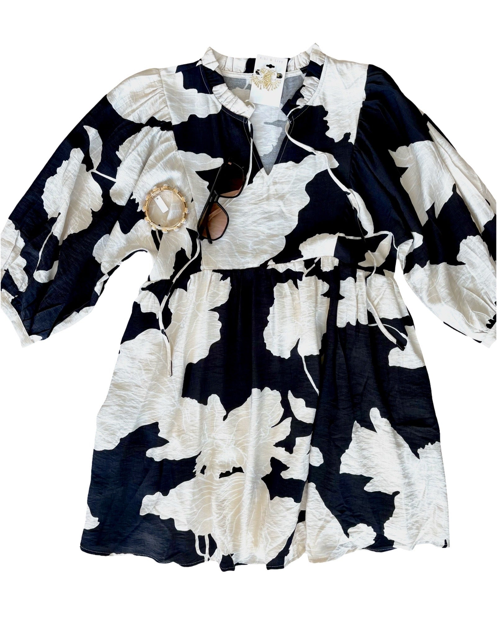 Step into the spotlight with this Black Floral Detailed Mini Dress, designed to turn heads and spark smiles. Its delicate floral patterns add a touch of whimsy, while the mini length keeps things flirty and fun. Perfect for dancing the night away or brunching with friends, this dress blends playful charm with effortless style.
