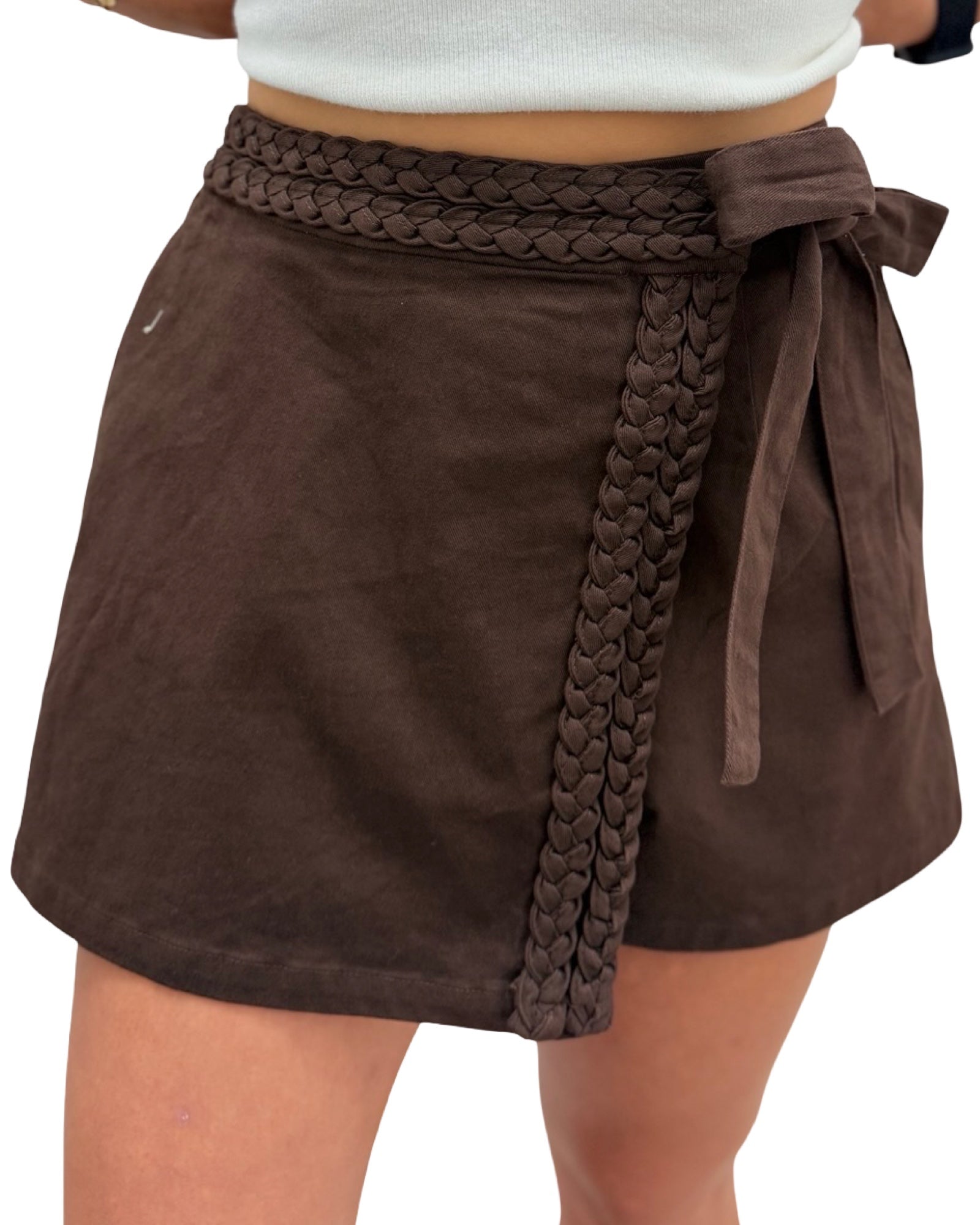 Brown Solid Braided Wrap Skort