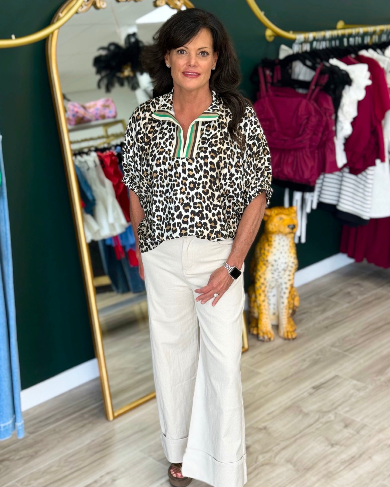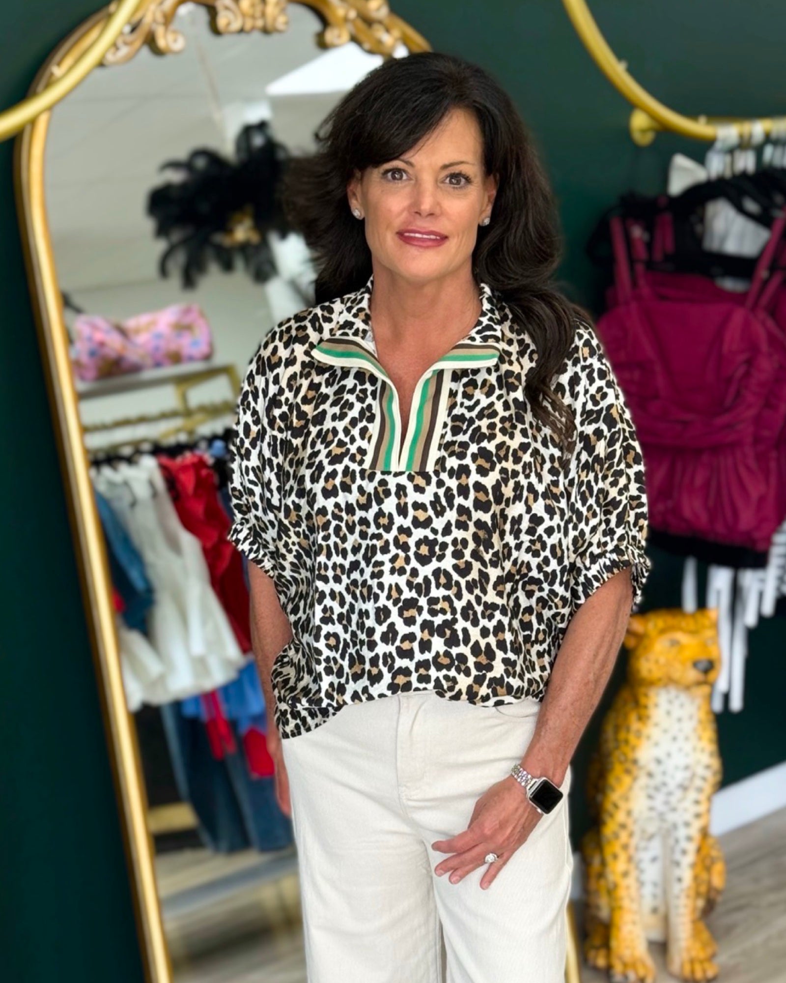 This Leopard Print Rib Collar Top is a must-have for any fashion-forward lady. The unique leopard print adds a touch of boldness to any outfit, while the rib collar provides a comfortable and stylish fit. With this top, you can effortlessly showcase your fierce style.
