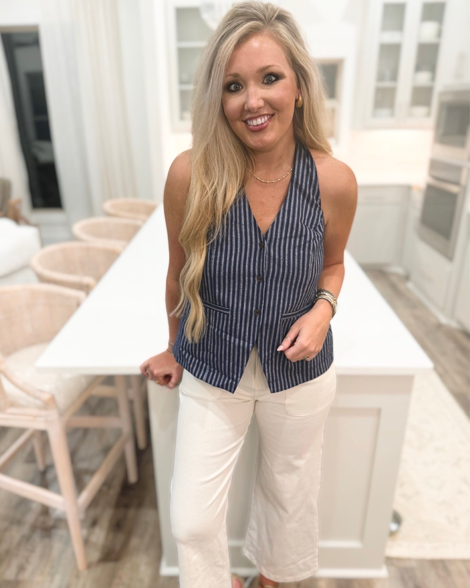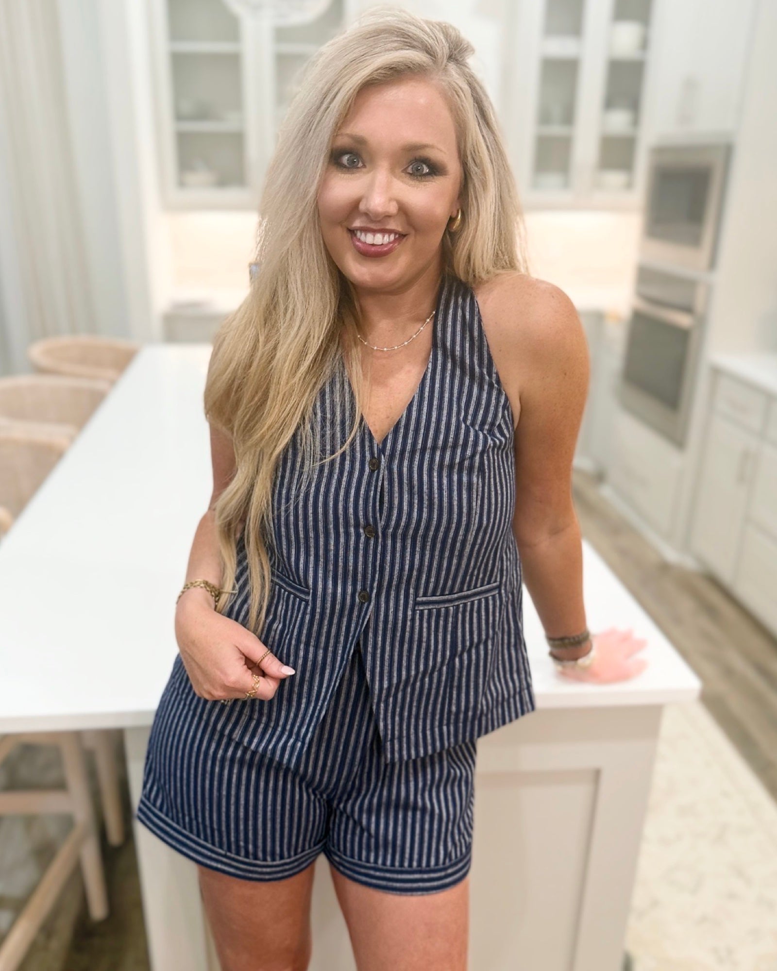 Navy Linen Halter Top Short Set