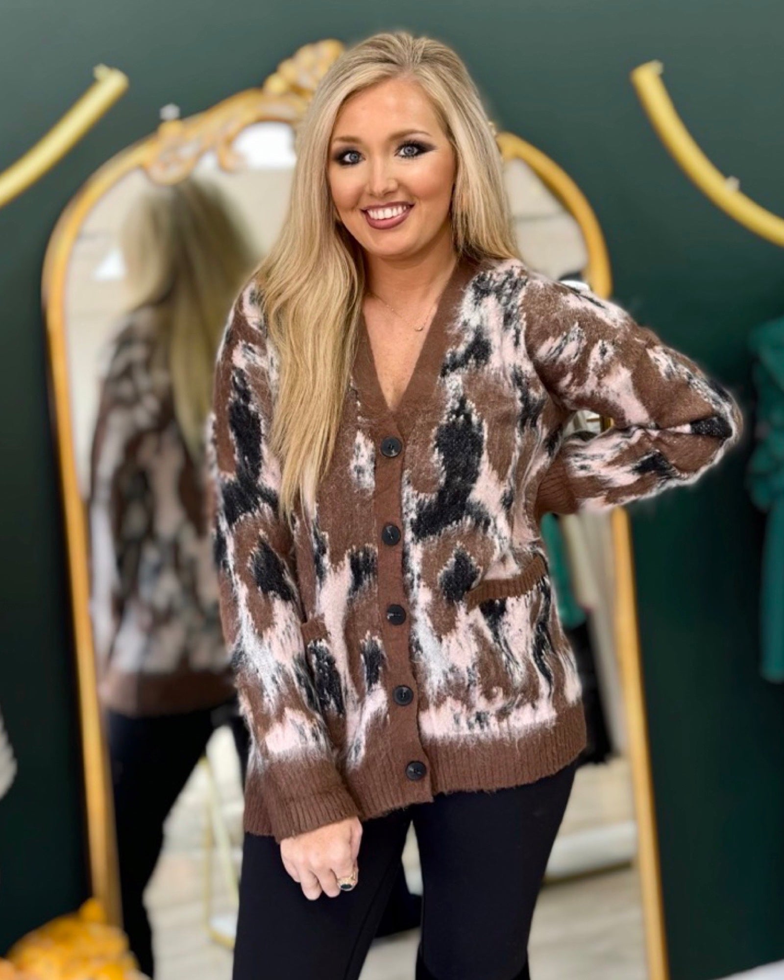 "Unleash your wild side with the Coco Leopard Button Up Cardigan for ladies. Perfect for layering, this cardigan adds a playful touch to any outfit. Be the queen of the concrete jungle in this quirky and comfortable piece. Roar (with style) in the Coco Leopard Cardigan!"