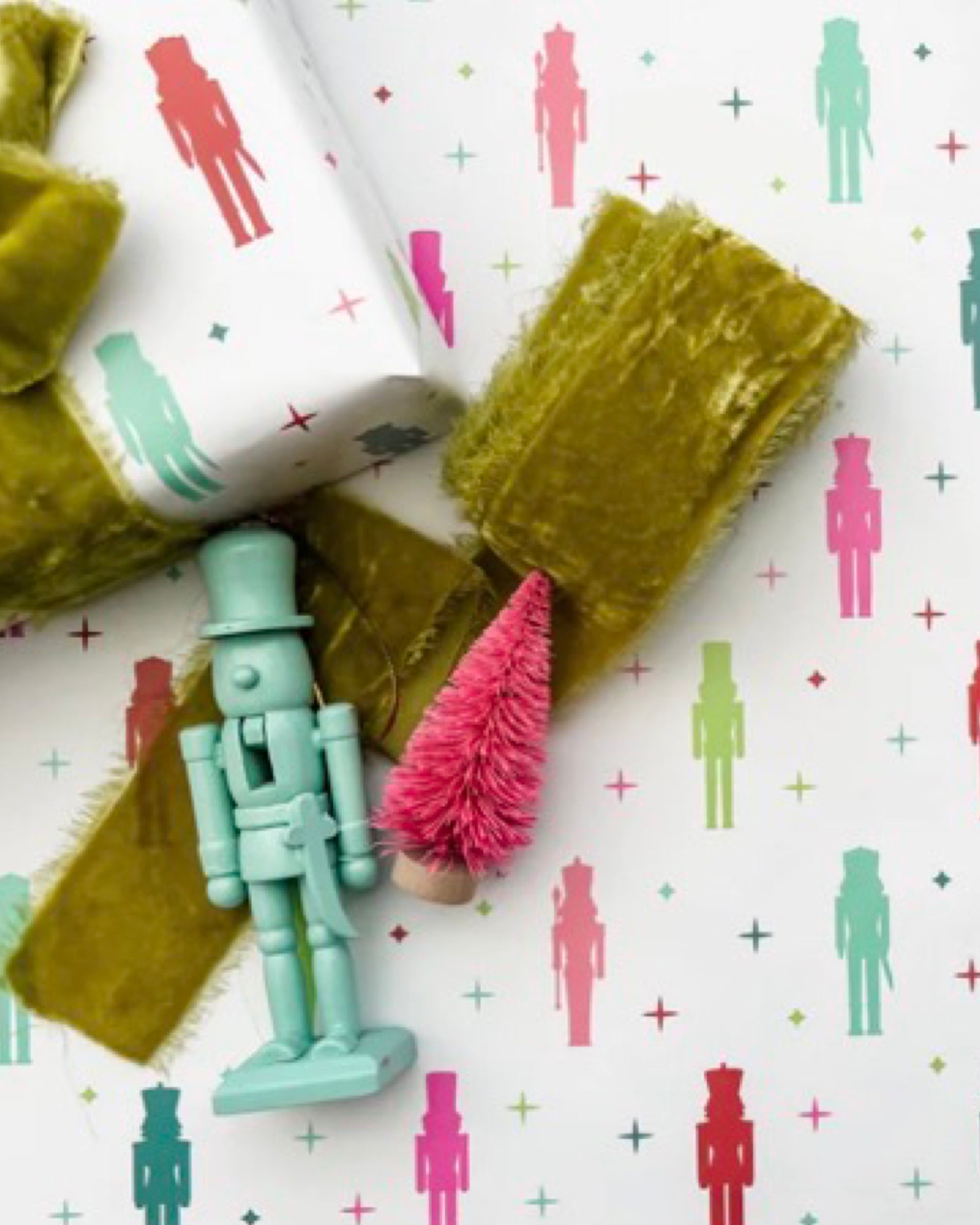 Celebrate the holiday season with our Colorful Nutcracker wrapping paper! This boutique-sized roll features a vibrant design showcasing classic nutcracker figures in an array of bright, festive colors. Each nutcracker is intricately detailed, bringing a touch of traditional holiday charm with a modern twist. Set against a cheerful background, this lively wrapping paper adds a burst of color and whimsy to your Christmas gifts. This high-quality paper is easy to work with, ensuring your gifts are wrapped beautifully and securely. Make your holiday packages stand out under the tree with this delightful nutcracker wrapping paper! * Mini Roll - 17" x 240" (17" x 20') * Uncoated paper * Gridlines on the back * Easy to tear paper (because we believe gifts are meant to be ripped open)