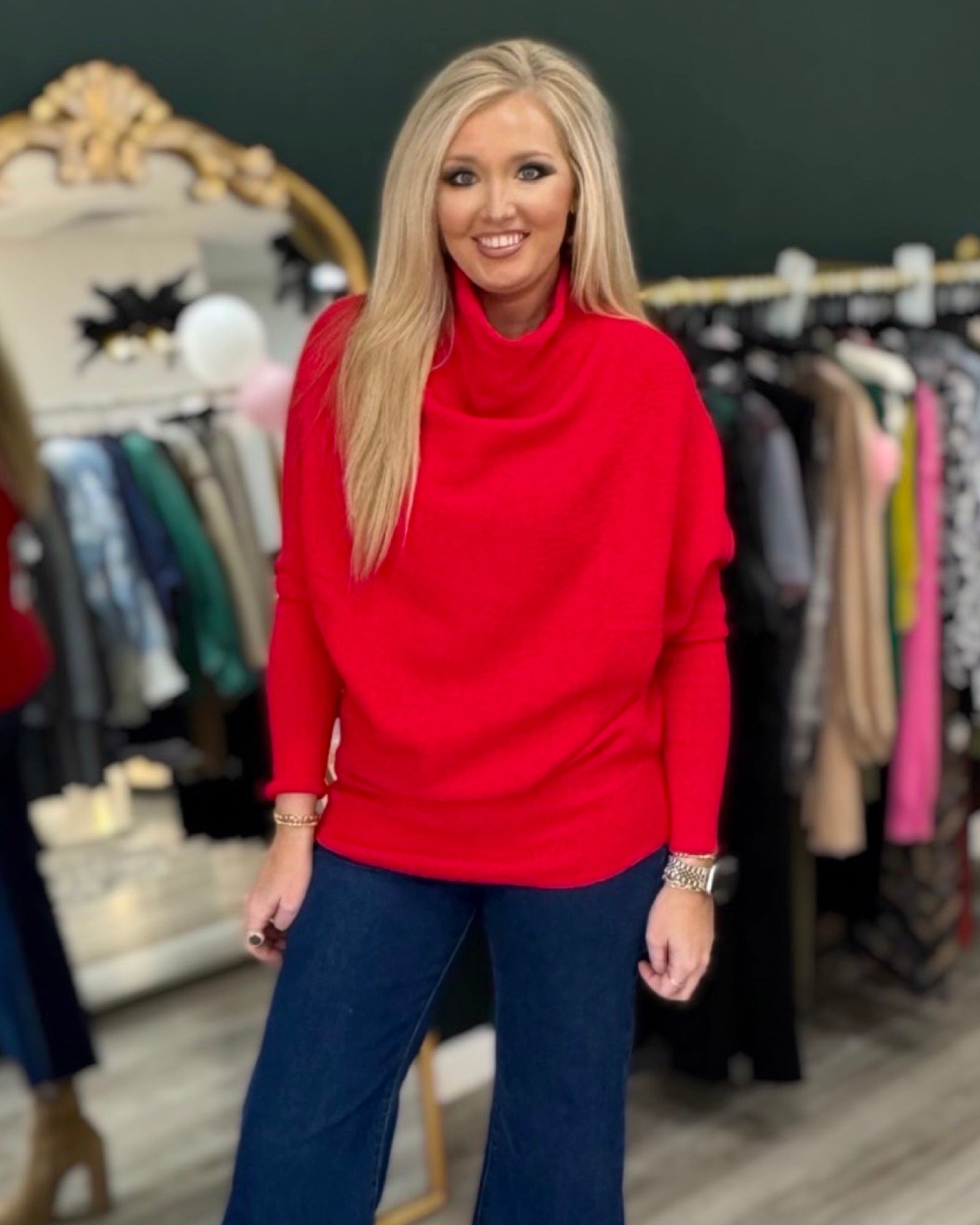 This Red Slouch Neck Sweater, designed for ladies, is a perfect blend of comfort and style. Made with high-quality material, it offers a relaxed fit with a unique slouch neck design. Stay warm and stylish this winter with this must-have addition to your wardrobe.